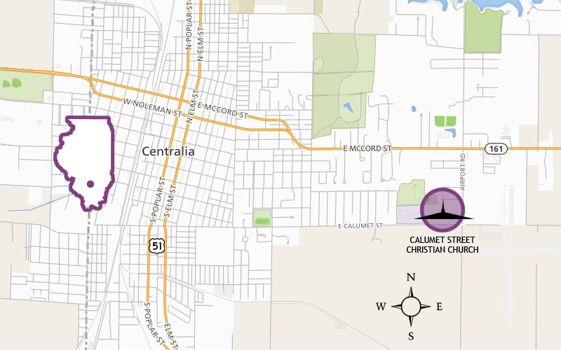 - From U.S. 51 (Elm Street one-way north or Poplar Street one-way south in Centralia) turn east on Calumet Street. Follow Calumet Street to Airport Road and CSCC.